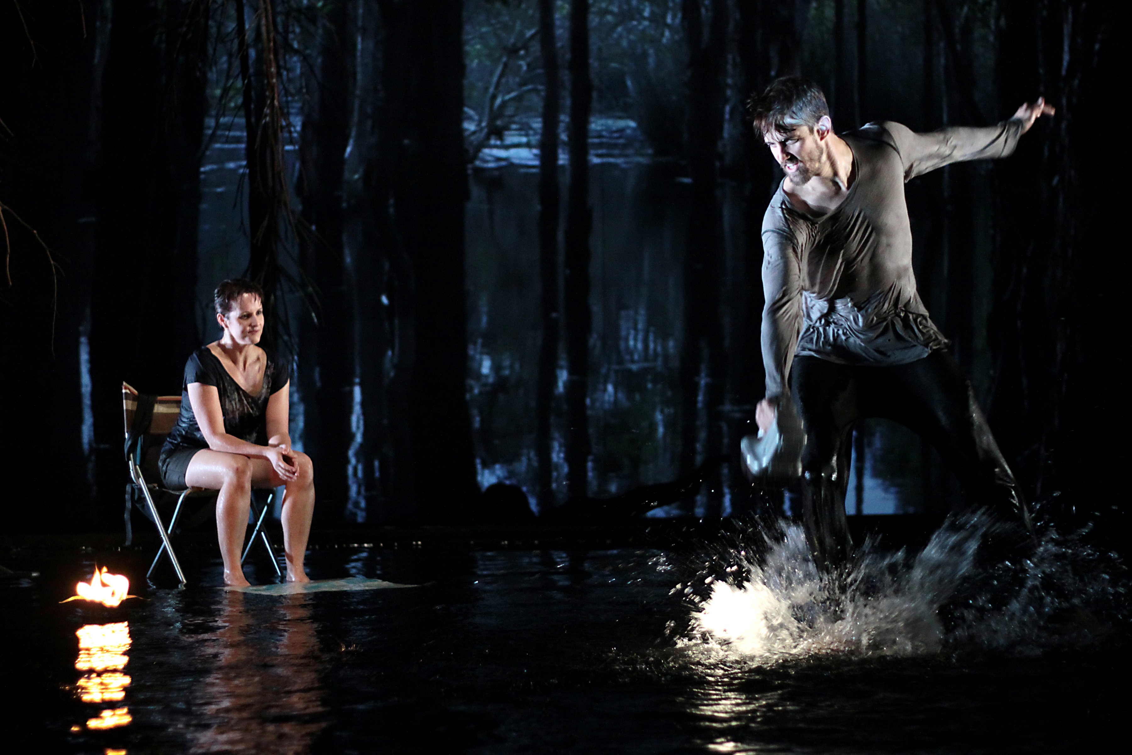 Lisa Wilson’s Lake had a one-night stand at Mandurah Performing Arts Centre (MPAC) on Wednesday, March 16, and what a torrid affair it was. Lake is a dance theatre piece that takes place on a stage flooded with a shallow pool of water and it explores the tumultuous relationship between a man (Timothy Ohl) and a woman (Kristina Chan). They’ve come to an isolated spot at a lake to camp, and rather than finding some peace and quiet and a chance for some good R & R, they instead uncover some disturbing truths about the nature of their relationship through a water elemental embodied by Hsin-Ju Chiu.