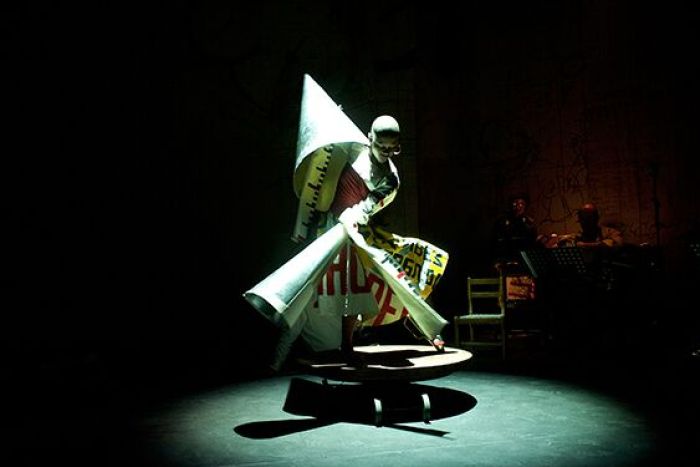 With Kentridge centre stage, the various elements swirl around him: dancer and choreographer Dada Masilo enters into a tight physical interaction with the artist and set, singers and musicians perform Philip Miller’s riveting score, an array of musical machines clatter intermittently into life and Catherine Meyburgh’s video design animates the proceedings.
