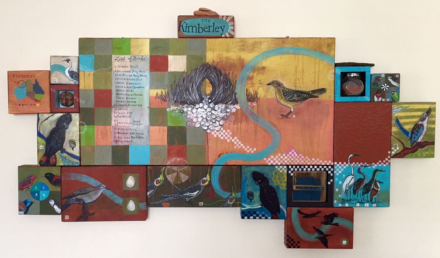 “This new body of work comes from a desire to explore Australia’s birds in a realistic, imaginary and illustrious way. Celebrating the essence of flight and song through a textural and mixed media approach to convey intimacy beyond beak and wing. This provides the viewer, the opportunity to come along on a fantastical journey. The purpose of the clay, wood and wire objects is to immerse one in the wonders of a circus-like atmosphere.”