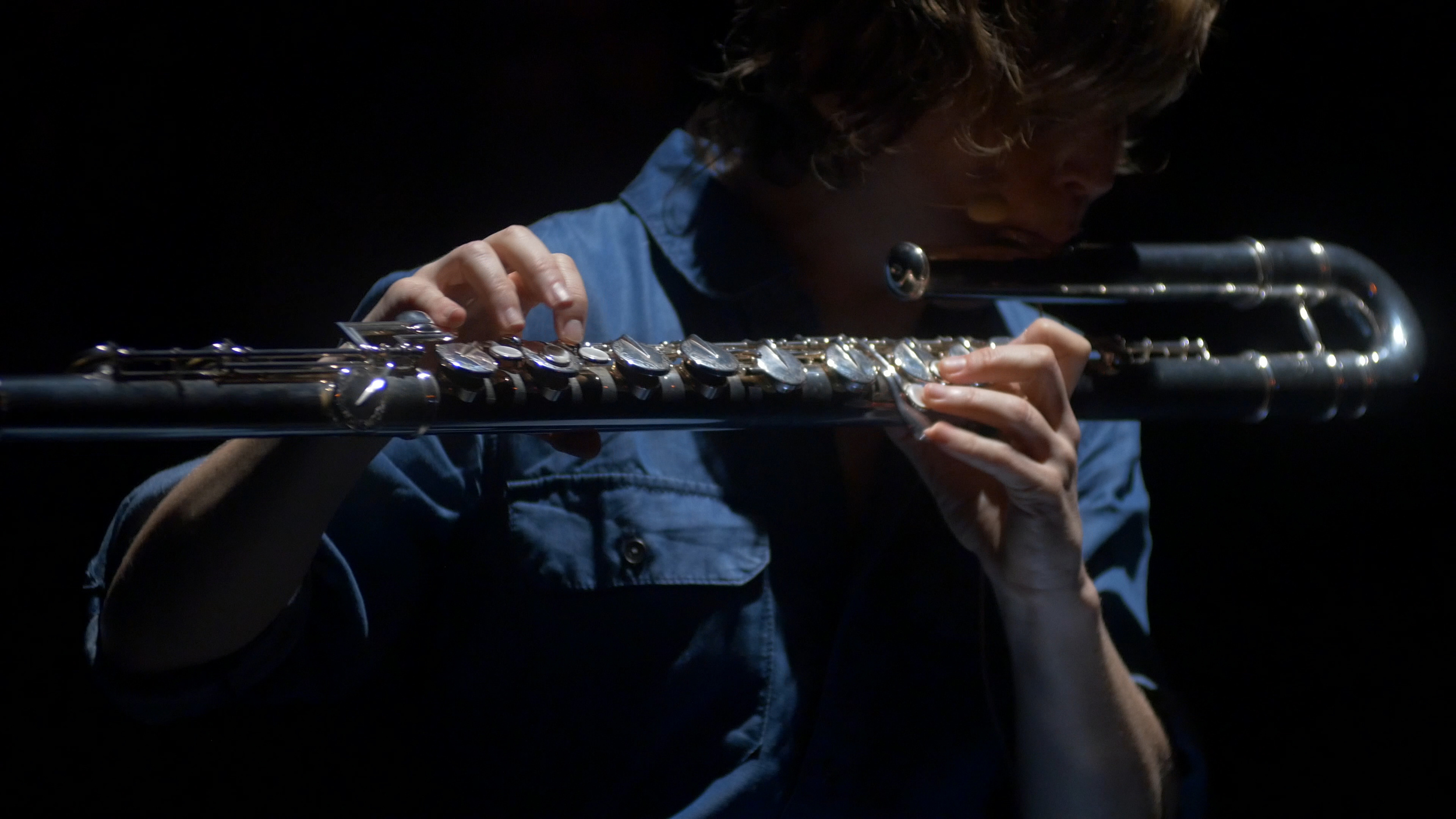 The pieces we heard on Wednesday night were selections from parts i, ii, and iii (2013-2015), beginning with two compositions by Felipe Lara, Meditation and Calligraphy (2014) for solo amplified bass flute, and Parabolas na Caverna (2014) for solo amplified flute. From the opening notes, it’s apparent we’re in for an uncommon, provocative, experimental performance.