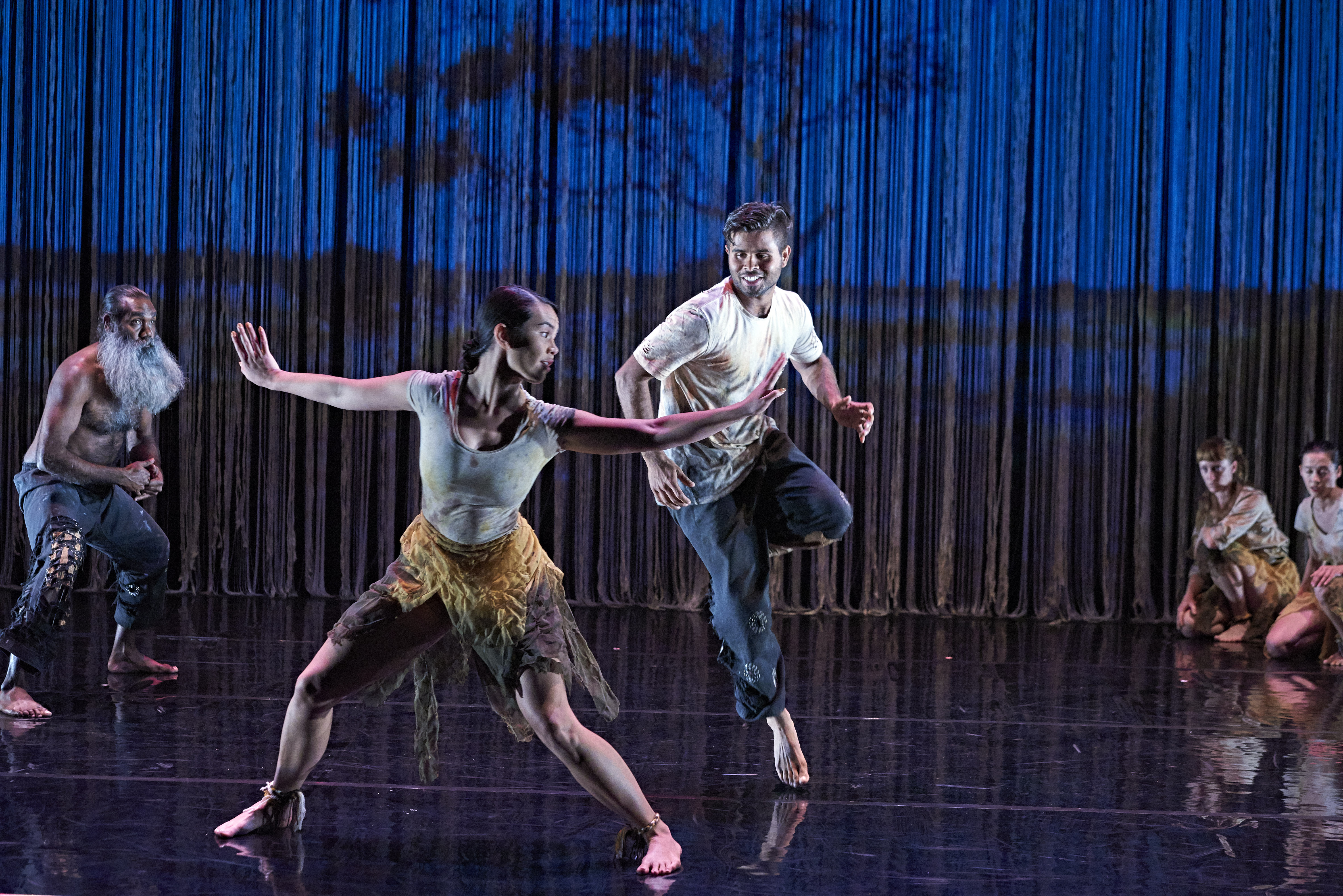 A narrative isn’t the only important aspect here – what also counts is your sensory experience, and the impressions the production makes on your heart and mind. The ensemble is unbeatable, with dancers from a wide range of performance backgrounds. WAAPA-trained Michael Smith, a man of Nyoongar and Wongi heritage, is electric: he is certainly one of the best movers I’ve had the pleasure of watching on any Perth stage. You simply can’t contain him, and he exudes energy from every inch of his frame. Isha Sharvani, an Indian dancer currently resident in Perth, swirls across the stage with fluid, swan-like grace, her energy serving as a counterpoint to some of the more vigorous moments.