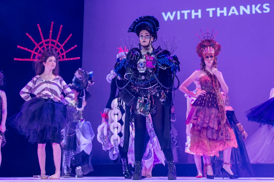 In 2016 this led to creations such as a burlesque steam engine and a walking historic pillar, ball gowns influenced by steam punk and environmental concerns, sweet summer outfits with intriguing engineered twists and intensively ornate works featuring handcrafts of felting and origami that catch the eye and then boggle the brain with the amount of work involved. Entries arrived from around Australia, with word beginning to spread and resulting in some international entries.