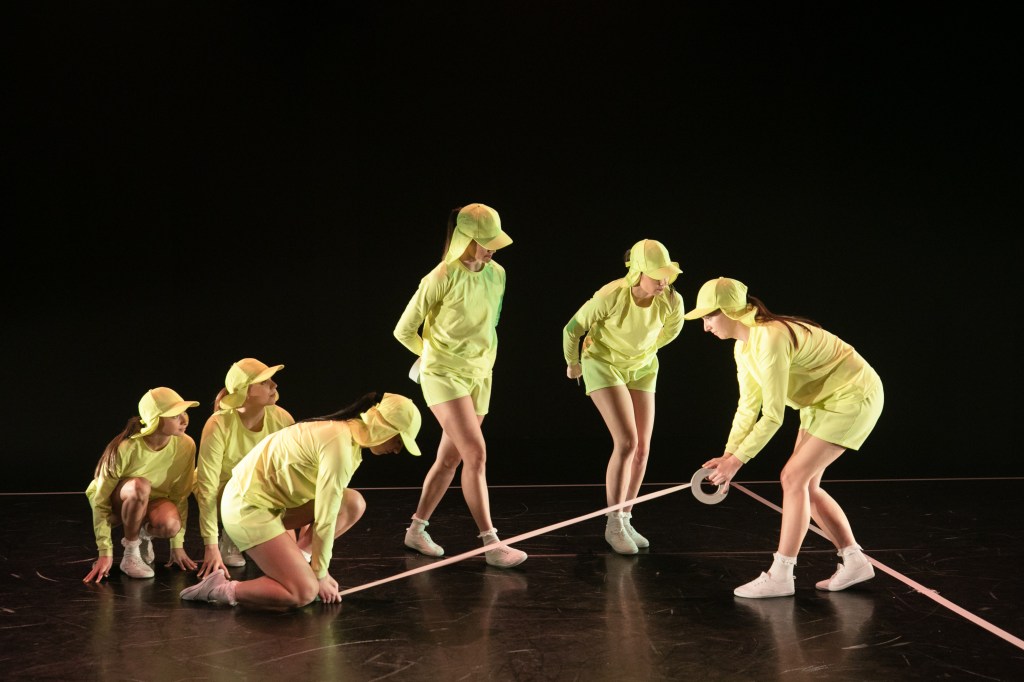The Ballkids, a corps of six LINK dancers (Emily Coles, Briannah Davis, Jo Omodei, Bianca Perrone, Giorgia Schijf, and Emily Tuckwell), whose bouncy, fluorescent uniformity sets the tone, mostly bookend the story. They fall in line with optimism and pride, they cower and disperse in fear of the Magician, and they achieve the precision as a corps to give an impression of a synchronised swimming team or perhaps even the Harlem Globetrotters when tennis balls become part of the choreography. And in every group, ‘there’s always one’ – here, the last ballkid in the line rounds each corner with an expression of goofy, open-mouthed bliss that makes the audience chuckle.