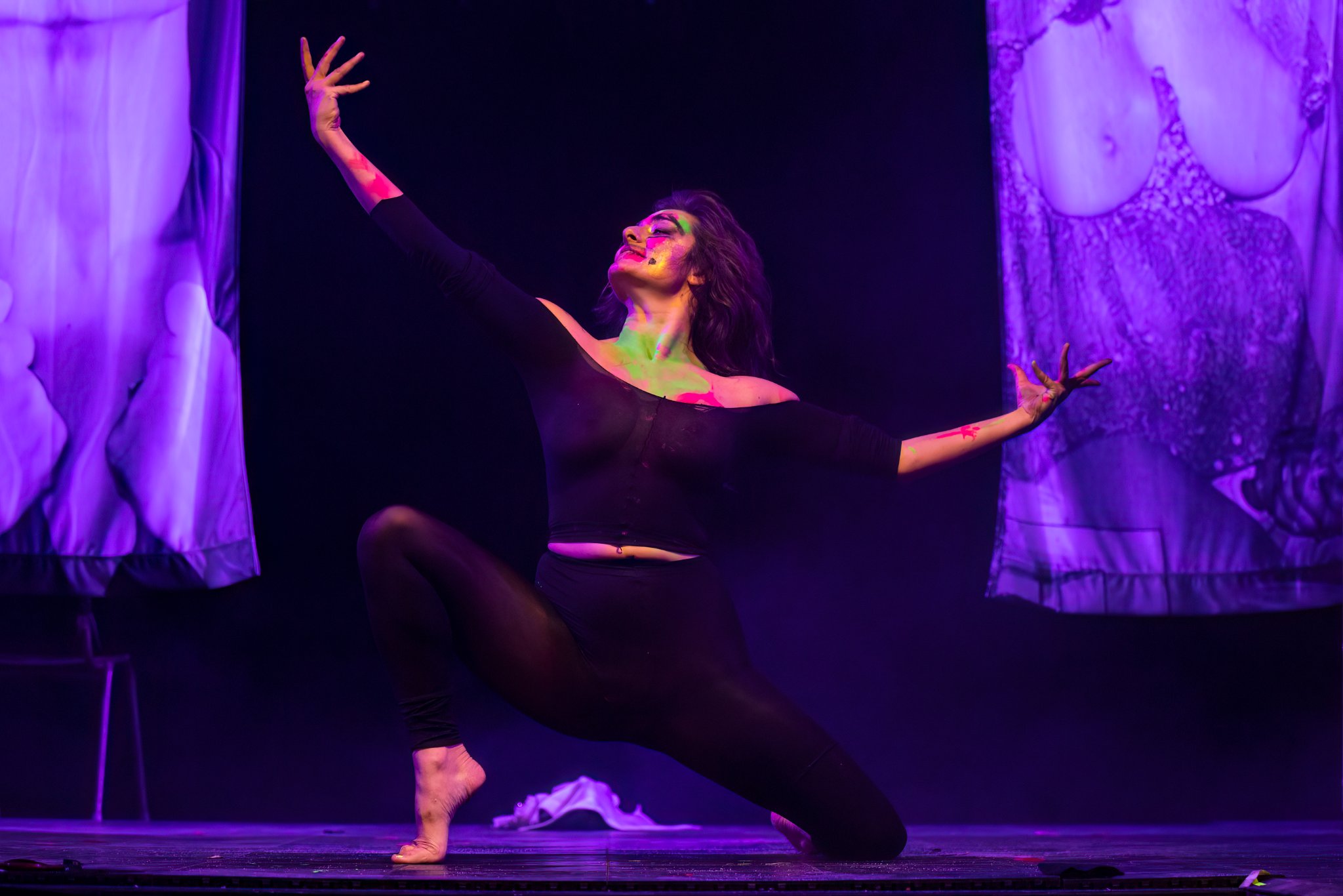 She invokes the spirits of many women who have had particular impact on her as an artist – Candy Royalle (poet and activist), Annie Sprinkle (performance artist and sexologist), Elizabeth Burton (striptease artist), her mother – and performs a ritual like none you’ve (likely) ever seen on any stage or public space. She reveals with candour and poetry the anguish that seeking justice for an assault by a loved one has brought her, and she shows us through a cleansing ritual of water and dance that her clown soul is indomitable.