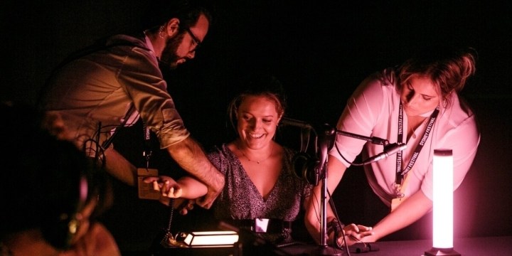 In technical terms, Truthmachine is second to none for its orchestration of sound, lights, mics, not to mention the machine itself, in enhancing the atmosphere of techno-mystery created by writer/director Nathan Sibthorpe. The show’s credits include at least a dozen designers, including a software designer (Clinton Freeman), plus the live performers, voice performers, and other collaborators.