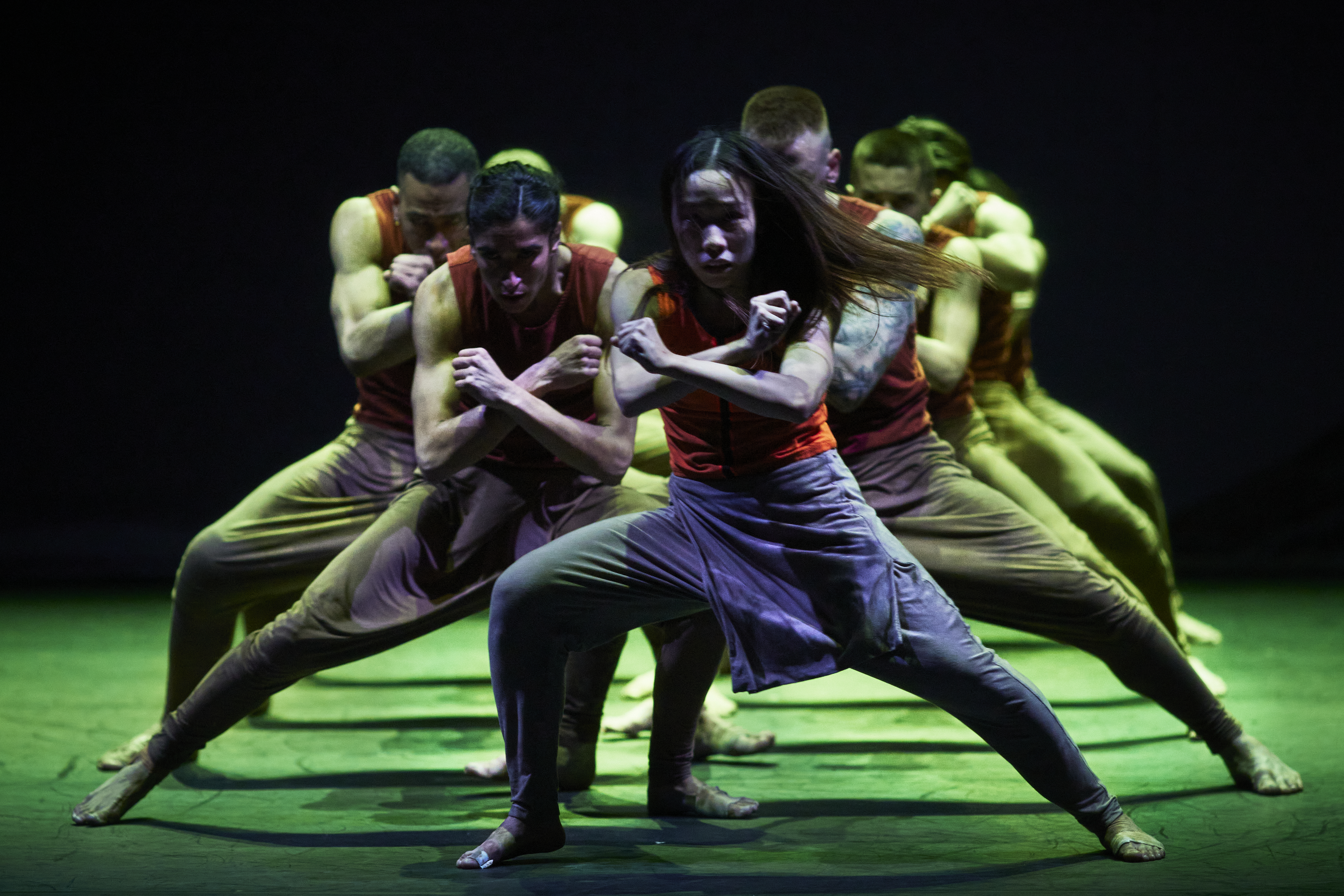The animals’ dialogue (written by Tariq Jordan) is pre-recorded by twice as many voice artists as there are dancers on stage, which engenders an immediate disconnect between what we see, what we hear, and what we can process. The dancers move to the rhythm and beats of the spoken word rather than music for a healthy portion of the show, and they rise to this challenge admirably. There are musical interludes (composed by Jocelyn Pook) where the company dances as a whole, but often these don’t forward the narrative in any perceptible way, so they almost feel superfluous.