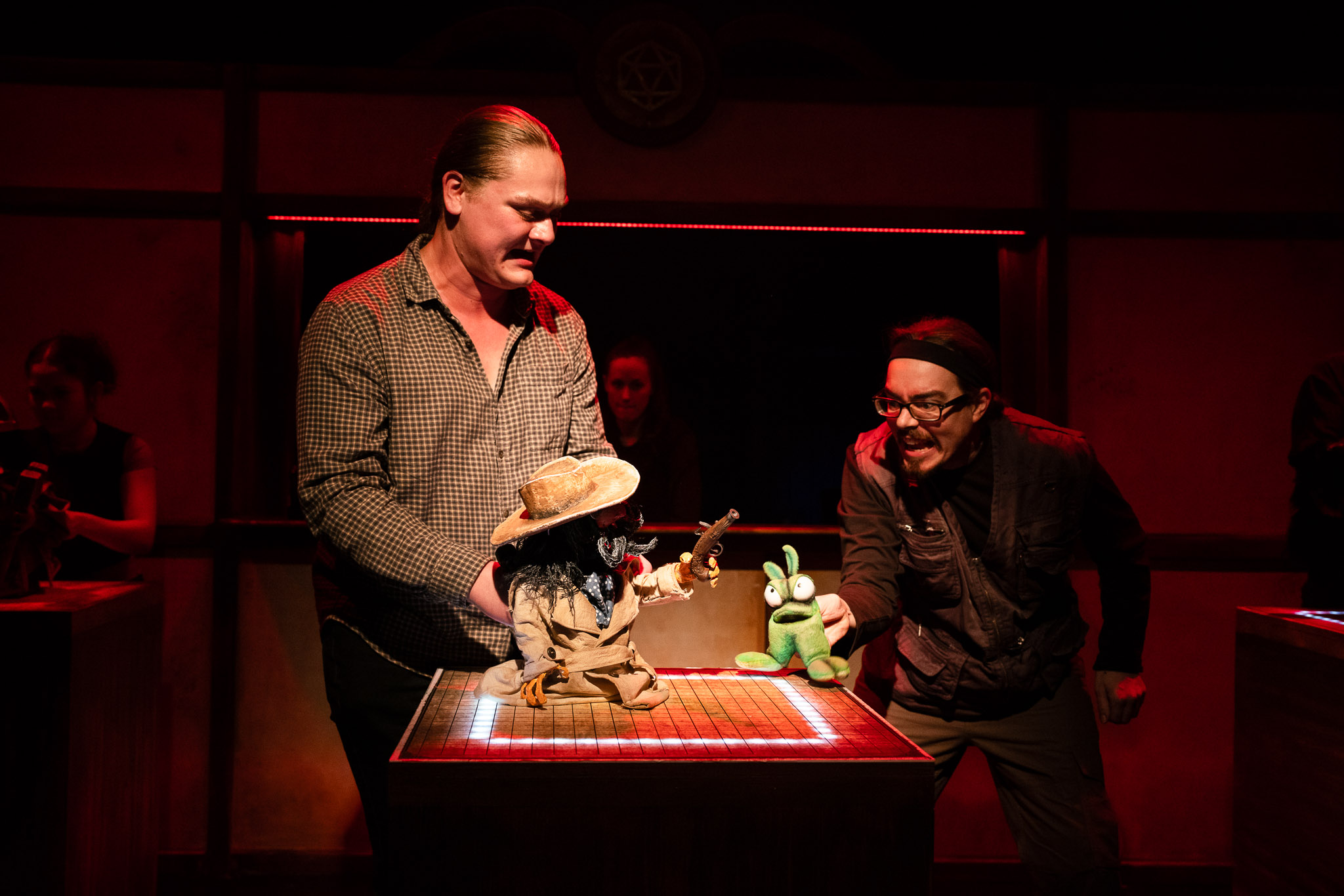 Writer-Director Scott McArdle has joined forces with Puppetry Directors Amberly Cull and Nick Pages-Oliver and Composer-Director Jackson Griggs [gee that’s a lot of high-powered hyphenatin’ goin’ on] to create something you could easily call magical; and in fact, I will. STNW is so full of that m-word in all of its components, the music, the puppetry, the performances, the story, that you can’t help but wonder if some kind of strange alchemy is at work. To turn a real-life experience of losing a friend to leukemia into a beautiful, silly, artful, raunchy, geeky, and, dare I say it, educational independent musical that has the RPG community coming out to the theatre in droves (and maybe even casting spells outside Bluey to get a last-minute cancelled ticket)? MAGIC.