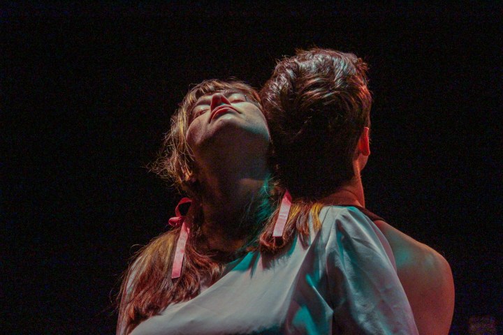 I’ll refrain from going into a detailed overview of each of the six stories told in Unnatural, as this would be a woefully inadequate distillation of each wonderful little piece. I say little, but that’s a misnomer – each tale is fierce and mighty in its own right and requires big things from its director and performers. Sutherland needs to have a green thumb; he must lay the right soil to enable this unruly garden of forbidden fruits and transforming beings to flourish. Larcombe, Critti-Schnaars, and Jupiter must commit; they need to immerse themselves so wholly into these ‘unnatural’ worlds that we, the spectators, never once doubt the truth of its existence.