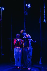 While Ask’s strengths as a staged work are apparent in these stylistic choices, its momentum flags when we linger too long in a couple of scenes between the siblings where their back-and-forth dialogue takes precedence over movement and symbolism as a means of forwarding the narrative. There is also a point somewhere in the script where a different story comes to the fore; Craig-Fraser transforms into a pelican and Pigram and Hughes become two new characters. The crossover and through-line becomes unclear, but with some dramaturgical reworking in Ask‘s next developmental phase may help with clarity.