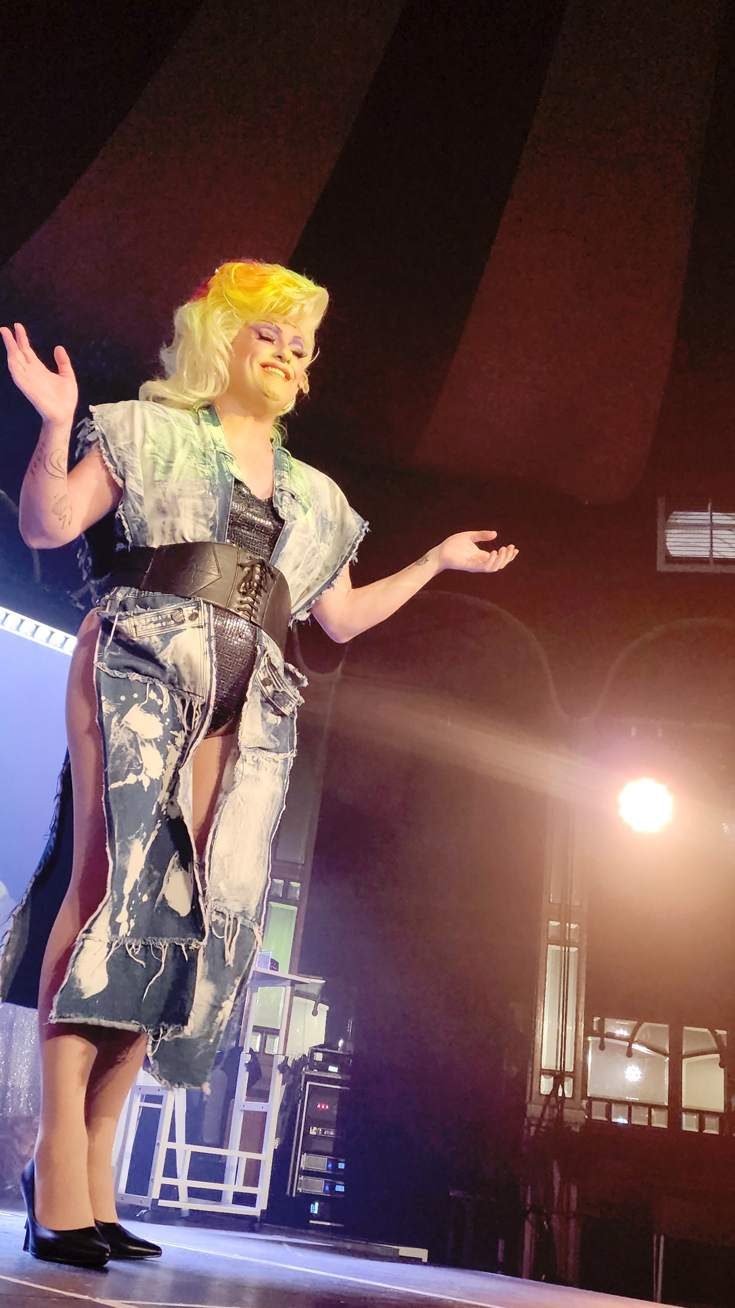 The show’s highlights feature Misdale twirling through a joyful “I Will Survive” from Priscilla (though I’m sorry that those of us in the middle section of the room let everyone down during the singalong), taking “We Are the Champions” from We Will Rock You by the horns, and rocking multiple wigs for “Wig in a Box” from Hedwig, with honorable mention going to the faux denim belted garment WITH POCKETS worn for the tune. I would have loved to see Dean really leave it all on stage for La Cage‘s seminal “I Am What I Am”, but perhaps the song’s placement means they simply can’t risk blowing out their voice midway through the show. It’s a tricky call, but the way the song builds, it demands a ‘nothing left’ delivery that might be better suited in its natural place as a finale.