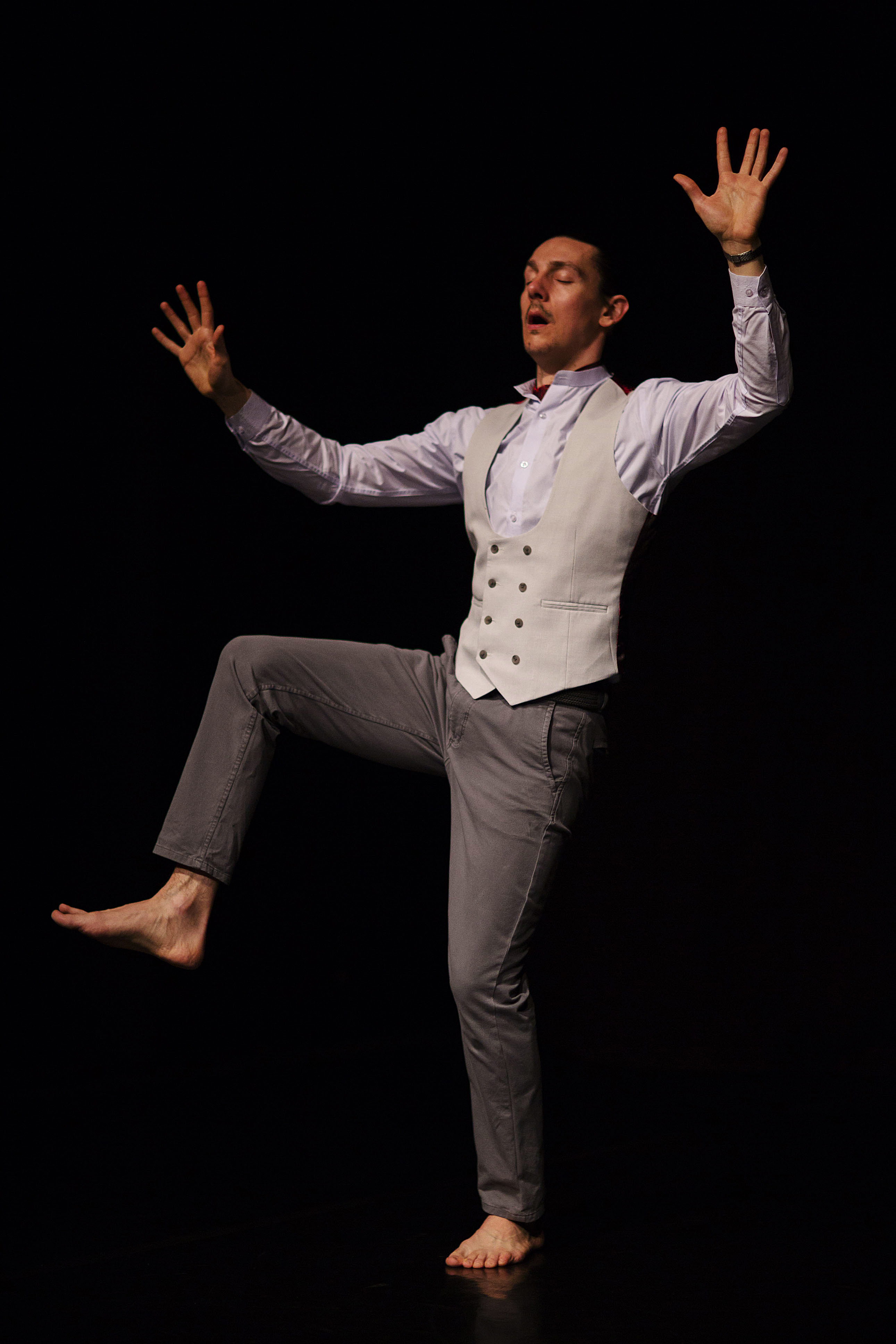 Beginning as a roaming performance in the foyer and bar and floating into the theatre with the audience, Dickie moves almost constantly for the duration of the piece. From eyeball to fingertip, he displays a precision and divine quality that is completely captivating. He speaks to you directly, conversationally, about himself and how/why he came to be performing here in Perth. As the piece continues there is an eerie quiet about the work. Underscored only by an unsettling white noise that you cannot be entirely certain is there.